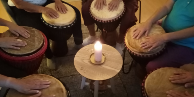 Darüber hinaus arbeitet sie als Rhythmuspädagogin und gestaltet integrative Trommelworkshops, in denen Rhythmus, Gruppendynamik und gemeinsames Erleben im Mittelpunkt stehen. Ihre Formate schaffen Räume, in denen Menschen über Klang, Bewegung und einfache Übungen miteinander in Kontakt kommen.