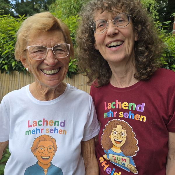 In tiefer Verbundenheit boten Karin Wagner und Heidelore Geitner, die sich über das Lachtelefon kennenlernten, beim 7. Kongress gemeinsam erstmalig einen Workshop mit dem Ziel "Lachend mehr sehen" an. Die Resonanz führte dazu, dass das Angebot in wöchentlichen Online-Angeboten fortgesetzt wurde und wird. Für diesen Kongress werden Übungen ausgewählt, die vorzugsweise dadurch möglich sind bzw. besondere Wirkung zeigen und Freude bereiten, dass sie zu zweit oder in der Gruppe praktiziert werden. Gemeinsam seh'n wir gut, seh'n gut - klaro.