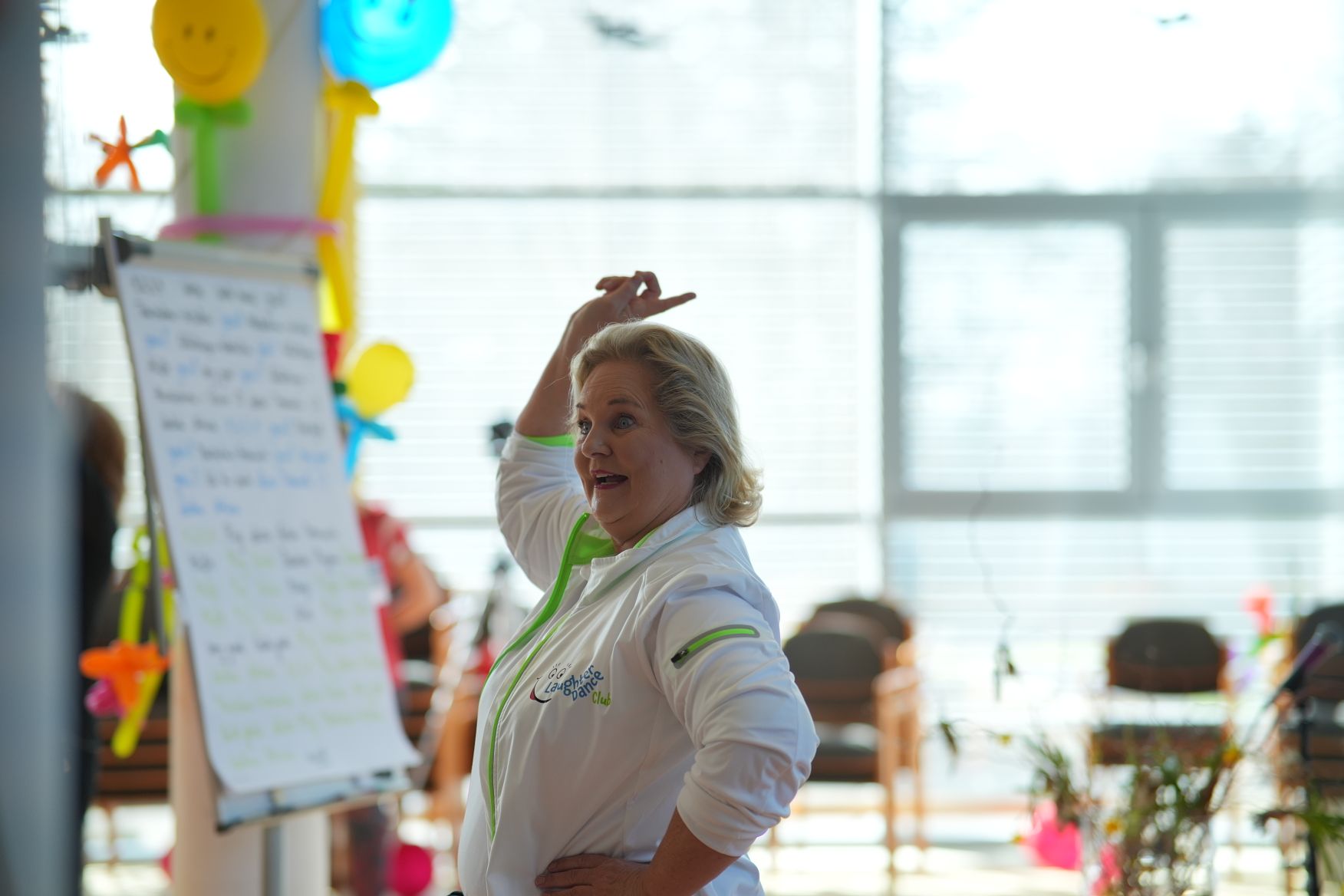 Ich bin seit 23 Jahren als selbstständige Vertriebstrainerin in Bäckereien deutschlandweit unterwegs. Mir geht es beruflich wie privat um eine gute Kommunikation und ein ausgewogenes Arbeits- und Privatleben. 2018 machte ich in Indien bei Dr. Kataria die Lachyoga Lehrerausbildung und seit dem wird Lachyoga mehr und mehr in die Trainings vor Ort und Workshops einbezogen. Seit 2022 widme ich mich vor allem dem LAUGHTER DANCE und bringe so nicht nur die Verkaufsteams hinter der Theke in Schwung :)