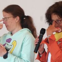 Vom 21. bis 24. März 2025 verwandelte sich das idyllische Bad Zwesten in eine sprudelnde Quelle der Heiterkeit. Im Haus Ebersberg, dem Geburtsort des Lachtelefons, feierten die beiden Teams von "Lachen am Morgen und Abend" sowie Lachtelefon ein unvergessliches Jubiläum. Zwei großartige Projekte, die fast zeitgleich entstanden. In einer heiteren Performance spielten Susanne Klaus und Sandra Mandl das "Geburtserlebnis" nach - nur 20 min, nachdem das erste Mal das Morgenlachen stattfand, wurde beim Lachtelefon der allererste Anruf angenommen. Erfahren haben sie davon erst ein Jahr später, als sie sich wunderten, dass sie am gleichen Tag Geburtstag feiern.